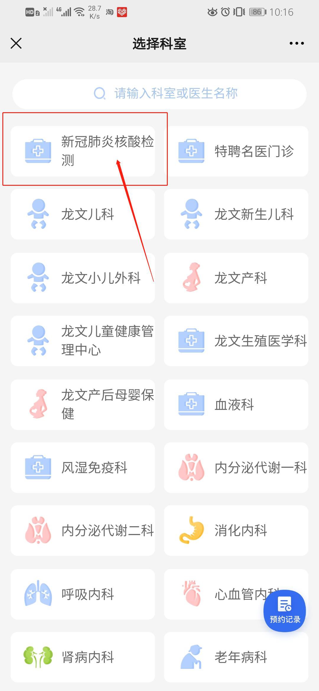 ?選擇【新冠肺炎核酸檢測】