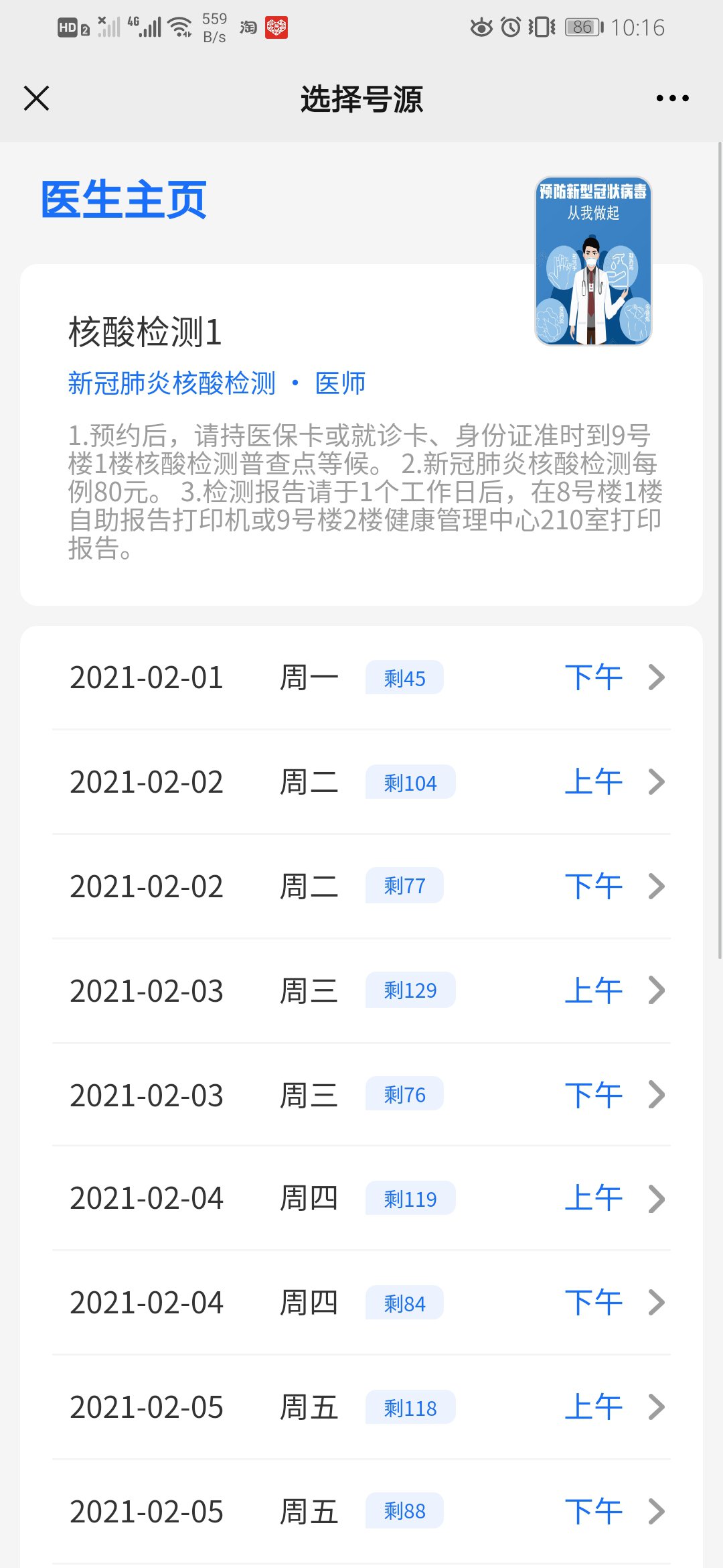 每周一到周日上午8:00-12:00下午14:30-17:309號樓1樓核酸采樣普查點(diǎn)