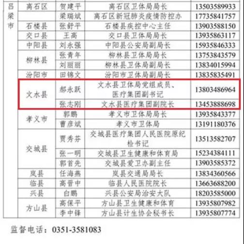 呂梁市各(區(qū))縣新冠疫情防控指揮部咨詢電話