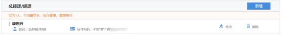 25. 點擊總經理/經理信息欄右側的【新增】,選擇或錄入總經理/經理基本信息,如下圖所示。