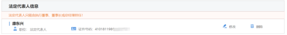 28. 點擊【保存】,法定代表人欄如下圖所示。
