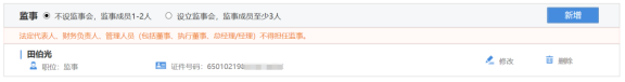 29. 監(jiān)事信息欄選擇“不設監(jiān)事會,監(jiān)事成員 1-2 人”點擊監(jiān)事欄右側的【新增】,打開監(jiān)事信息錄入