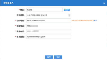 35. 點擊【保存】,財務負責人信息欄如下圖所示。