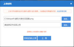 本平臺內用戶上傳資料可以通過電腦端上傳的方式:這種方式通常要求對資料進行掃描,然后拷貝到電腦里邊。掃碼資料上傳省去了資料掃描和拷貝到電腦端的過程,用戶可以掃描二維碼,然后拍照,直接將照片上傳到平臺。