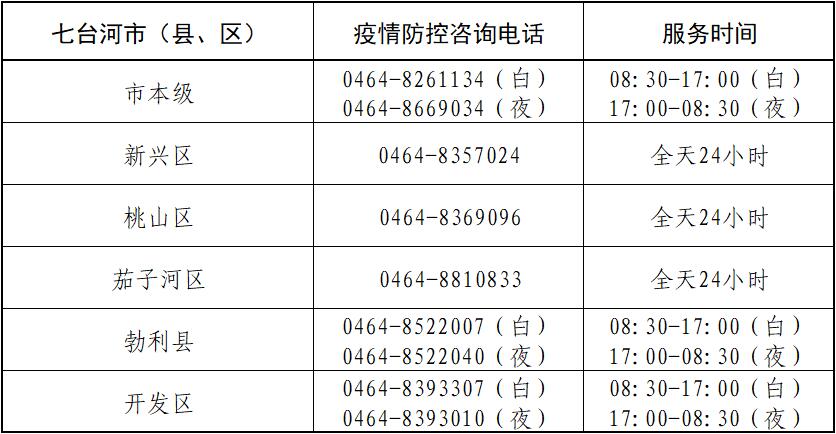 七臺(tái)河市新冠疫情防控指揮部咨詢電話:0464-8261134;