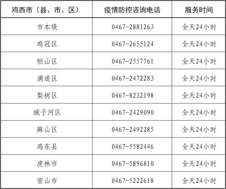 雞西市新冠疫情防控指揮部咨詢電話:0467-2881263;