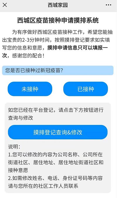 北京西城新冠疫苗接種預(yù)約登記操作指南