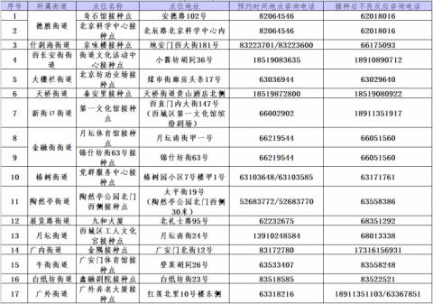 北京西城區(qū)新冠疫苗部分街道社區(qū)咨詢電話