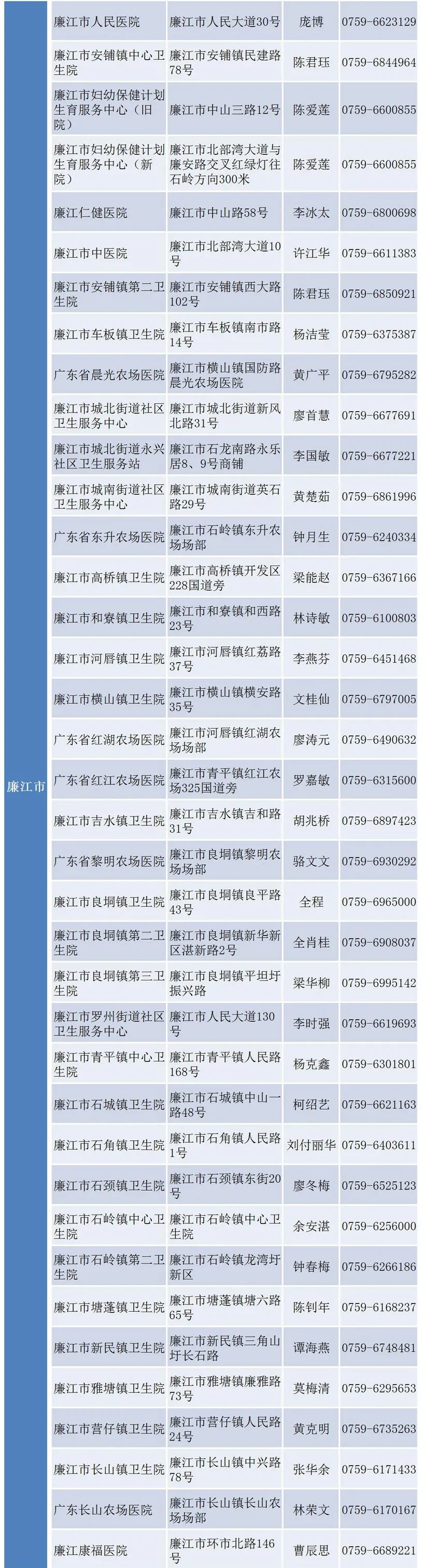 按照國家、省、市相關(guān)工作要求,廉江市已陸續(xù)開展對重點人群和其他人群新冠病毒疫苗接種工作。近日,廉江市衛(wèi)健委公布我市新冠病毒疫苗預(yù)防接種點。目前,廉江市共有38家機構(gòu)可供市民預(yù)約接種新冠病毒疫苗。詳細單位名單、地址、接種時間和預(yù)約電話等信息看這里↓↓↓