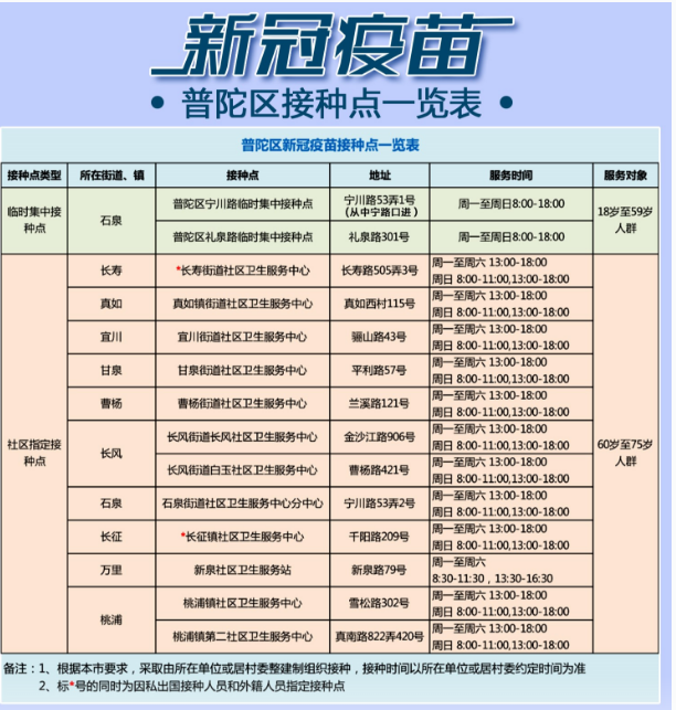 按照國家、市相關工作要求,上海市普陀區(qū)已陸續(xù)開展對重點人群和其他人群新冠病毒疫苗接種工作。近日,普陀區(qū)衛(wèi)健委公布我區(qū)新冠病毒疫苗預防接種點。目前,普陀區(qū)共有14家機構可供市民預約接種新冠病毒疫苗。詳細單位名單、地址、接種時間和預約電話等信息看這里↓↓↓