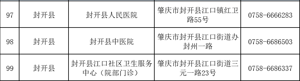 肇慶市封開縣新冠病毒疫苗接種點信息
