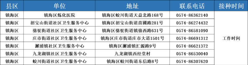 接種地址:寧波市鎮(zhèn)海區(qū)蛟川街道東信路8號