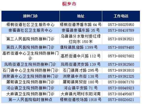 嘉興市桐鄉(xiāng)市新冠病毒疫苗接種點(diǎn)信息