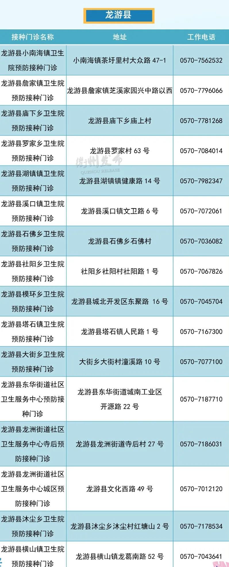 衢州市龍游縣新冠病毒疫苗接種點(diǎn)信息