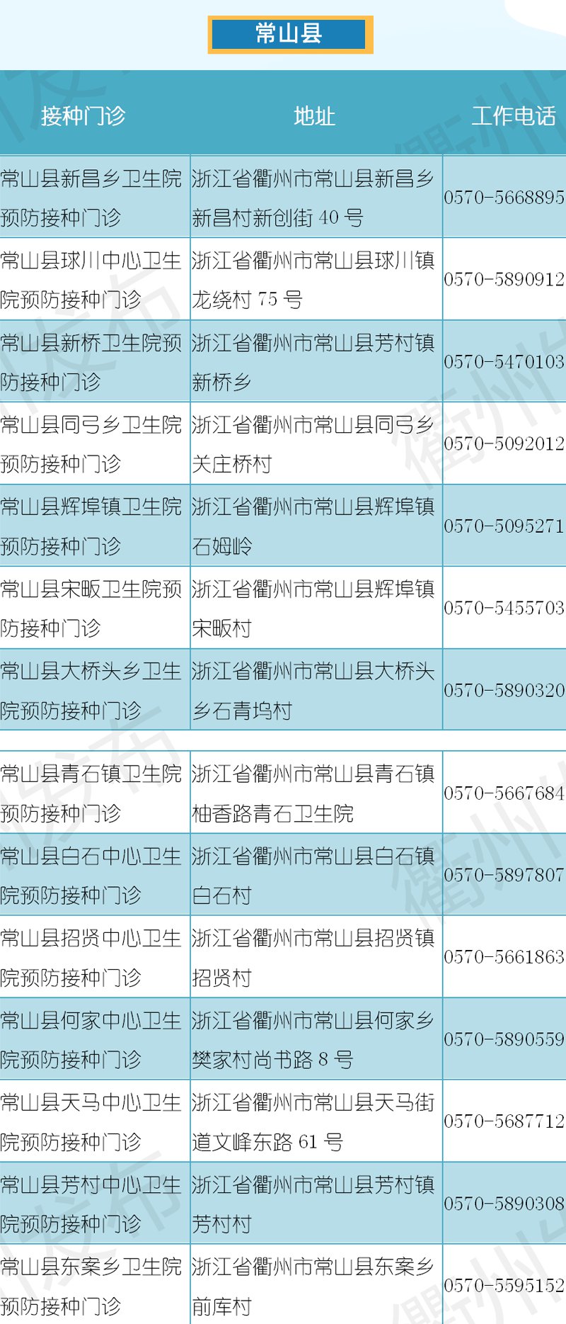 接種地址:浙江省衢州市常山縣芳村鎮(zhèn)新橋鄉(xiāng)