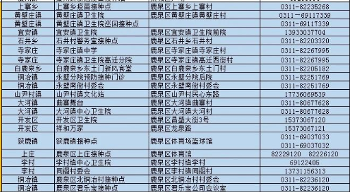 一、石家莊市鹿泉區(qū)新冠病毒疫苗接種點信息