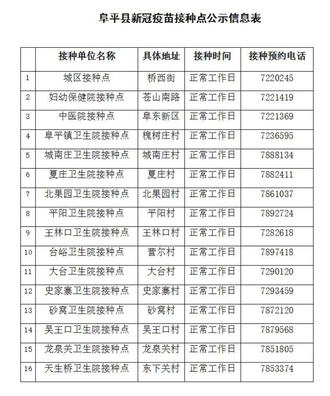一、保定市阜平縣新冠病毒疫苗接種點信息
