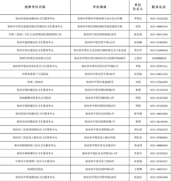 鄭州市中原區(qū)新冠病毒疫苗接種點信息