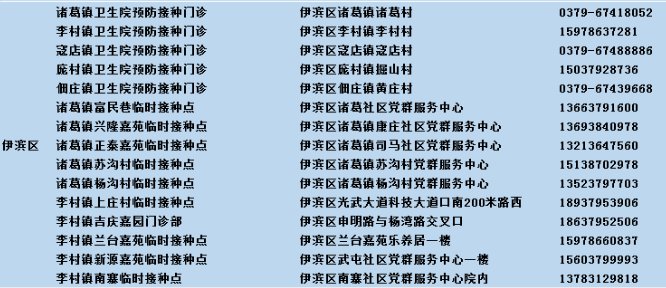 洛陽市伊濱區(qū)新冠病毒疫苗接種點(diǎn)信息