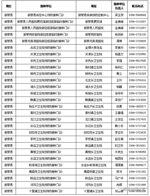 接種地址:駐馬店市新蔡縣余店鄉(xiāng)衛(wèi)生院,