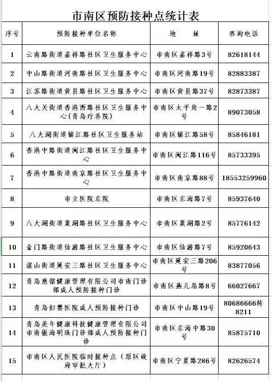 青島市市南區(qū)新冠病毒疫苗接種點(diǎn)信息