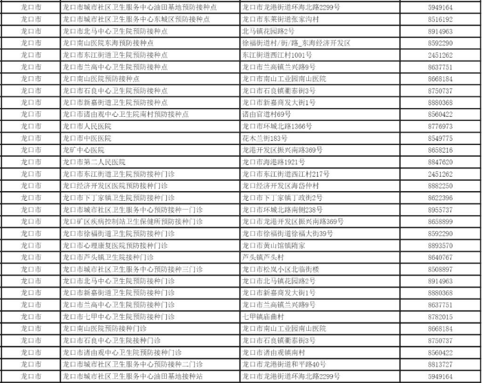 煙臺(tái)市龍口市新冠病毒疫苗接種點(diǎn)信息