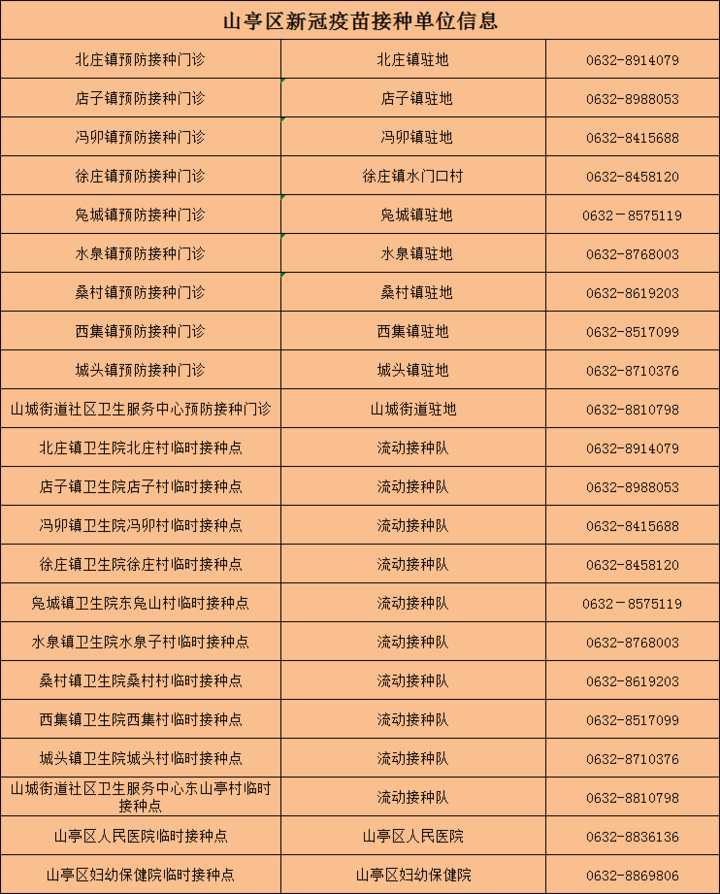 棗莊市山亭區(qū)新冠病毒疫苗接種點(diǎn)信息
