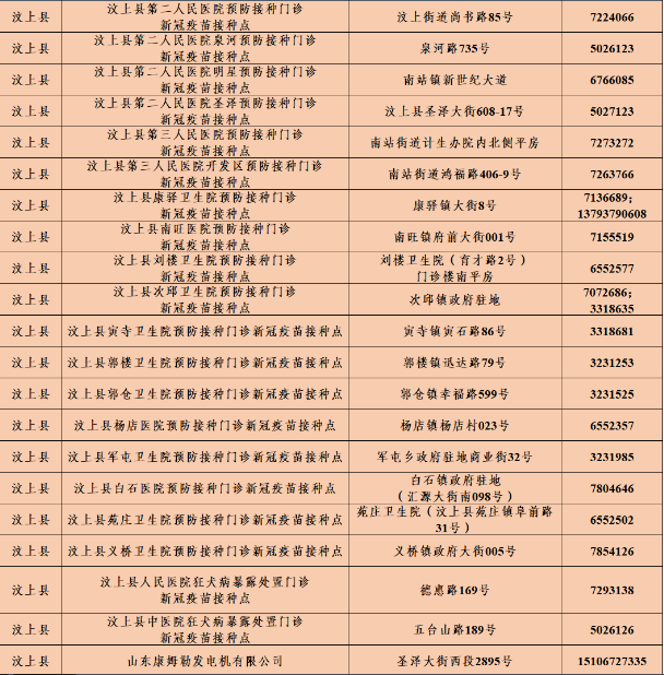 接種地址:濟寧市汶上縣泉河路735號