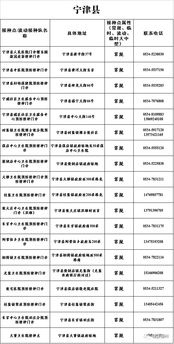 寧津縣新冠病毒疫苗接種點及預約咨詢電話