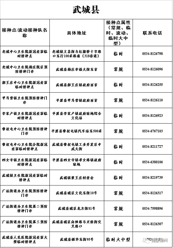 接種地點(diǎn):德州市武城縣文化西街