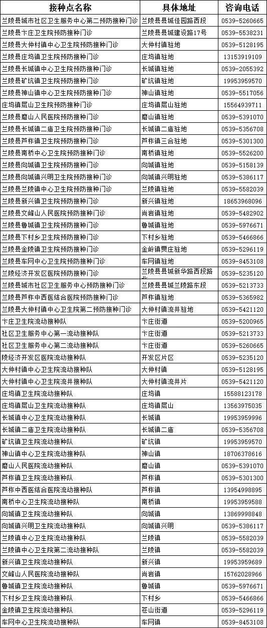接種地點:臨沂市蘭陵縣縣城建設(shè)路17號