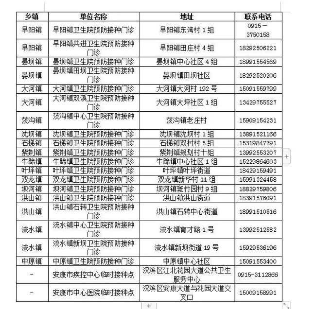 接種地點(diǎn):安康市漢濱區(qū)張灘鎮(zhèn)中心街道23號(hào)