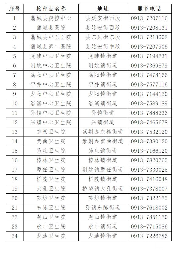 渭南市蒲城縣新冠病毒疫苗接種點(diǎn)信息