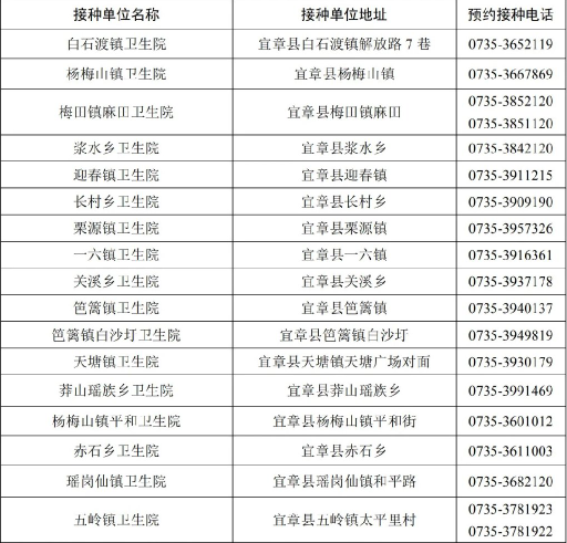 郴州市宜章縣新冠病毒疫苗接種點信息