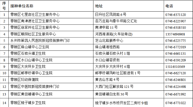 永州市零陵區(qū)新冠病毒疫苗接種點(diǎn)信息