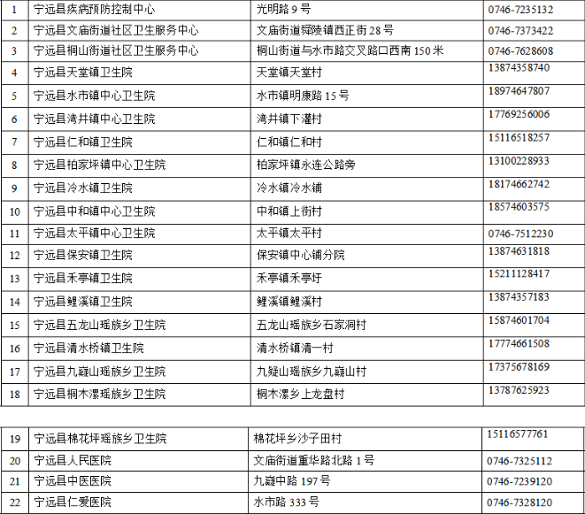 永州市寧遠縣新冠病毒疫苗接種點信息