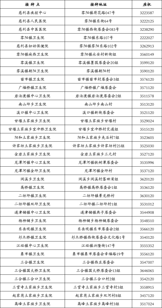 張家界市慈利縣新冠病毒疫苗接種點信息