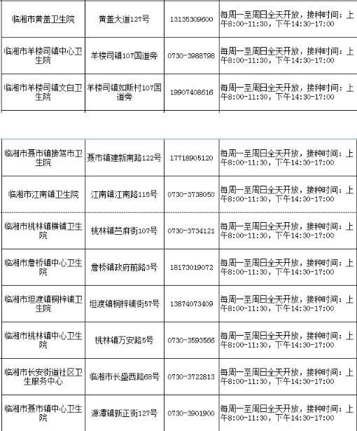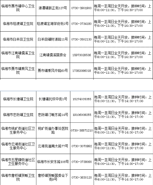 岳陽市臨湘市新冠病毒疫苗接種點信息