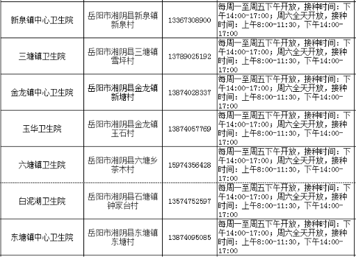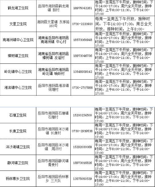 岳陽市湘陰縣新冠病毒疫苗接種點信息