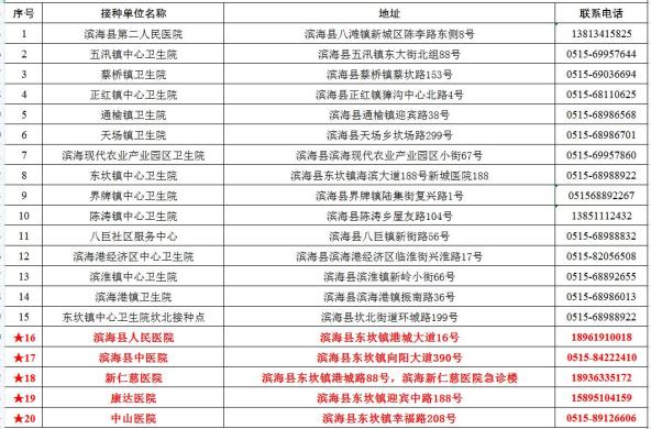 鹽城市濱??h新冠病毒疫苗接種點信息