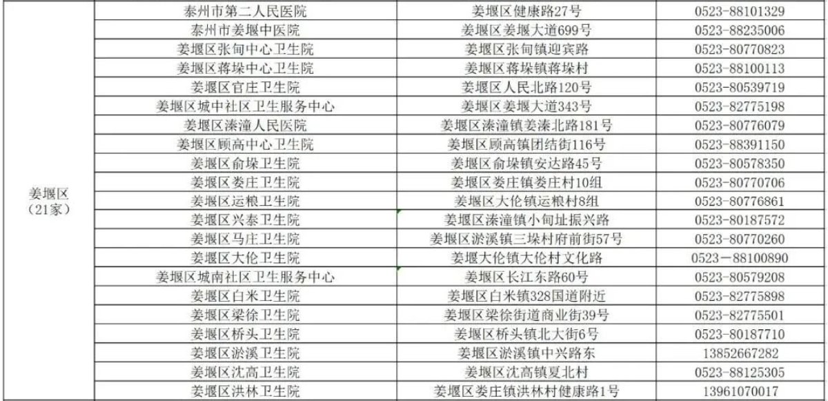 泰州市姜堰區(qū)新冠病毒疫苗接種點(diǎn)信息