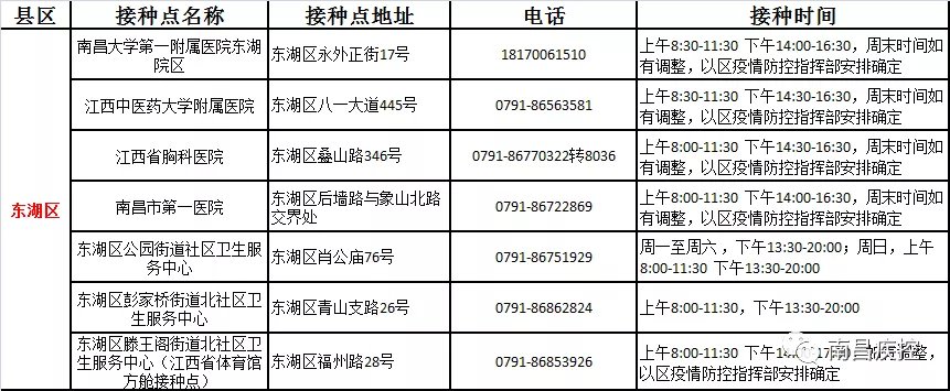 南昌市東湖區(qū)新冠病毒疫苗接種點(diǎn)信息