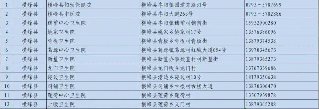 上饒市橫峰縣新冠病毒疫苗接種點信息