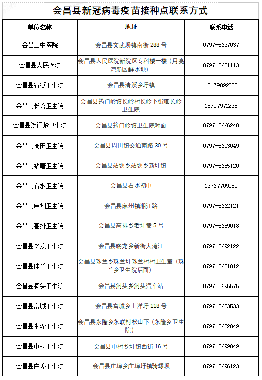 贛州市會(huì)昌縣新冠病毒疫苗接種點(diǎn)信息