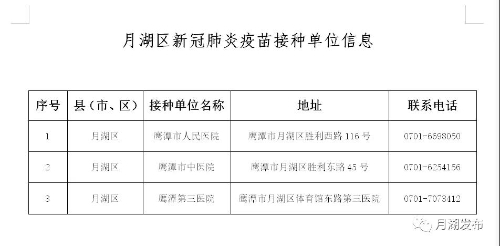 鷹潭市月湖區(qū)新冠病毒疫苗接種點信息