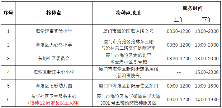 廈門市海滄區(qū)新冠病毒疫苗接種點信息