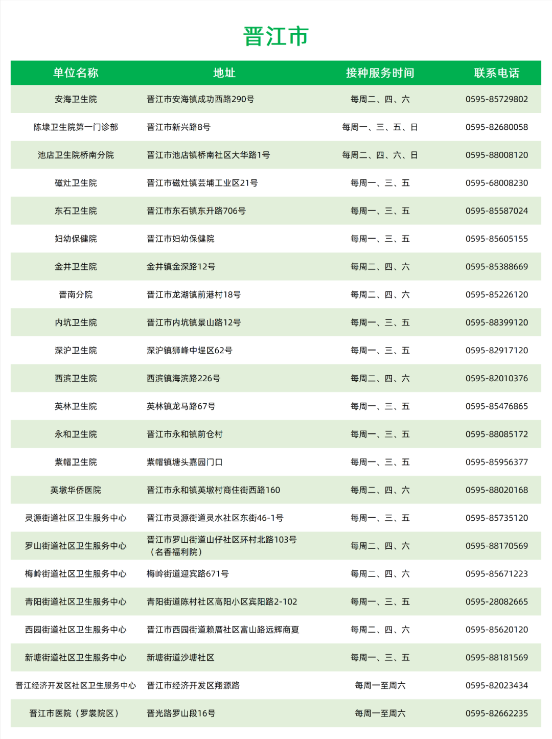 晉江市新冠病毒疫苗接種點(diǎn)信息