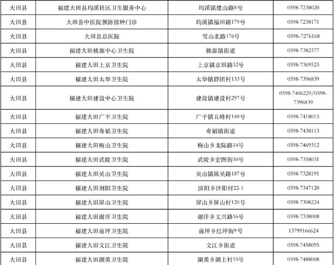 大田縣新冠病毒疫苗接種點及預(yù)約咨詢電話