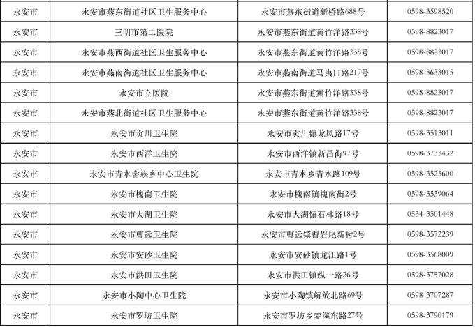 永安市新冠病毒疫苗接種點及預約咨詢電話