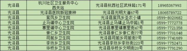 南平市光澤縣新冠病毒疫苗接種點(diǎn)信息